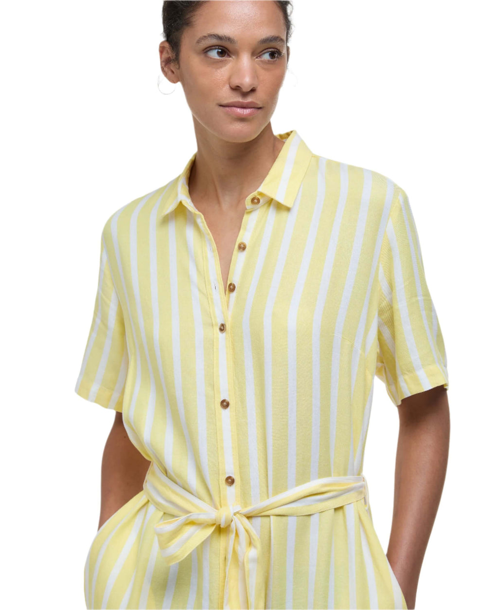 - Shirt Dress Silhouette: Classic button-down front with a self-tie belt for a flattering fit.
