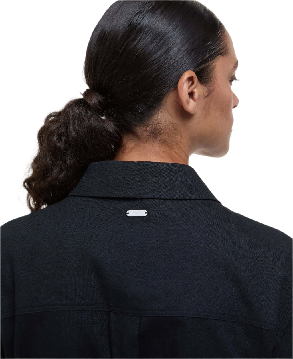 - Shirt Dress Silhouette: A button-down front with a self-tie belt for a feminine and adjustable fit.