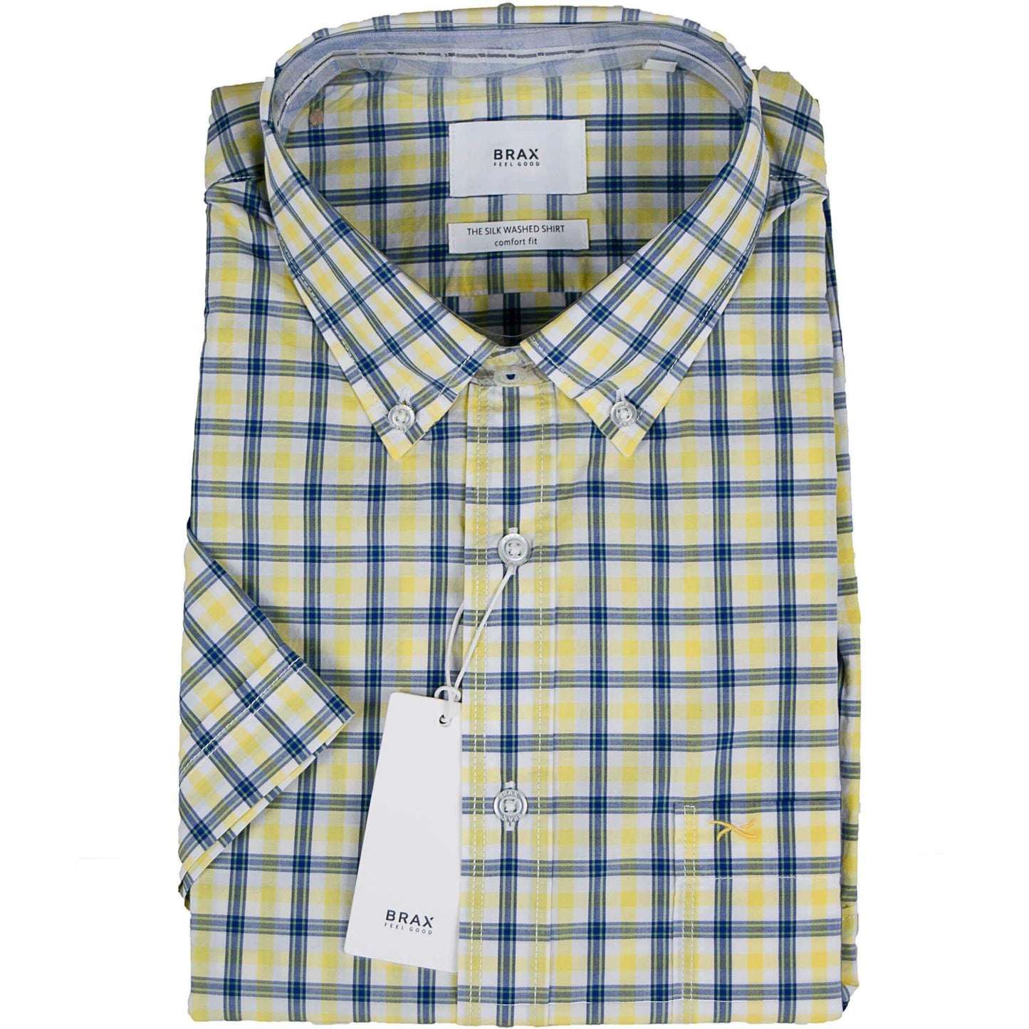 The Brax Drake Short Sleeve Shirt is a casual essential, crafted from 100% silk-washed cotton for a soft, comfortable feel. Featuring a classic check pattern and a button-down collar, this shirt brings timeless style to any casual outfit. The comfort fit and practical breast pocket make it a versatile choice for warm weather, perfect for pairing with jeans or shorts for relaxed days out.