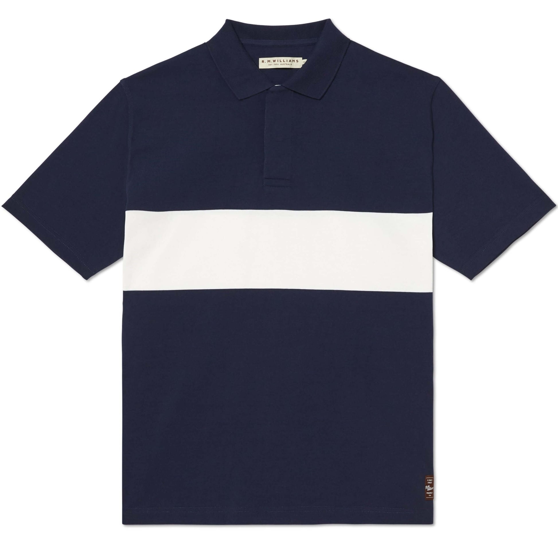- Woven R.M. Williams patch at front hem