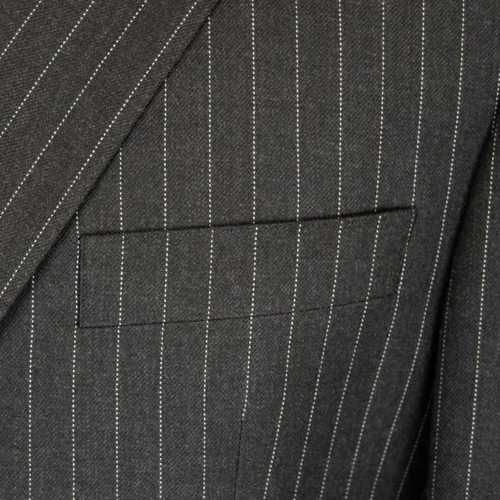 The Bladen 2-Piece Grey Pinstripe Suit is a timeless expression of British craftsmanship, combining elegance with superior comfort. Made from 100% wool woven in England, this suit is designed for classic tailoring and long-lasting quality. The single-breasted jacket features side vents for ease of movement, a two-button closure, and straight side pockets for a refined finish. The flat-front trousers are half-lined to the knee, ensuring a smooth and comfortable fit. Whether for business or formal occasions, this suit offers impeccable style with a traditional British touch.