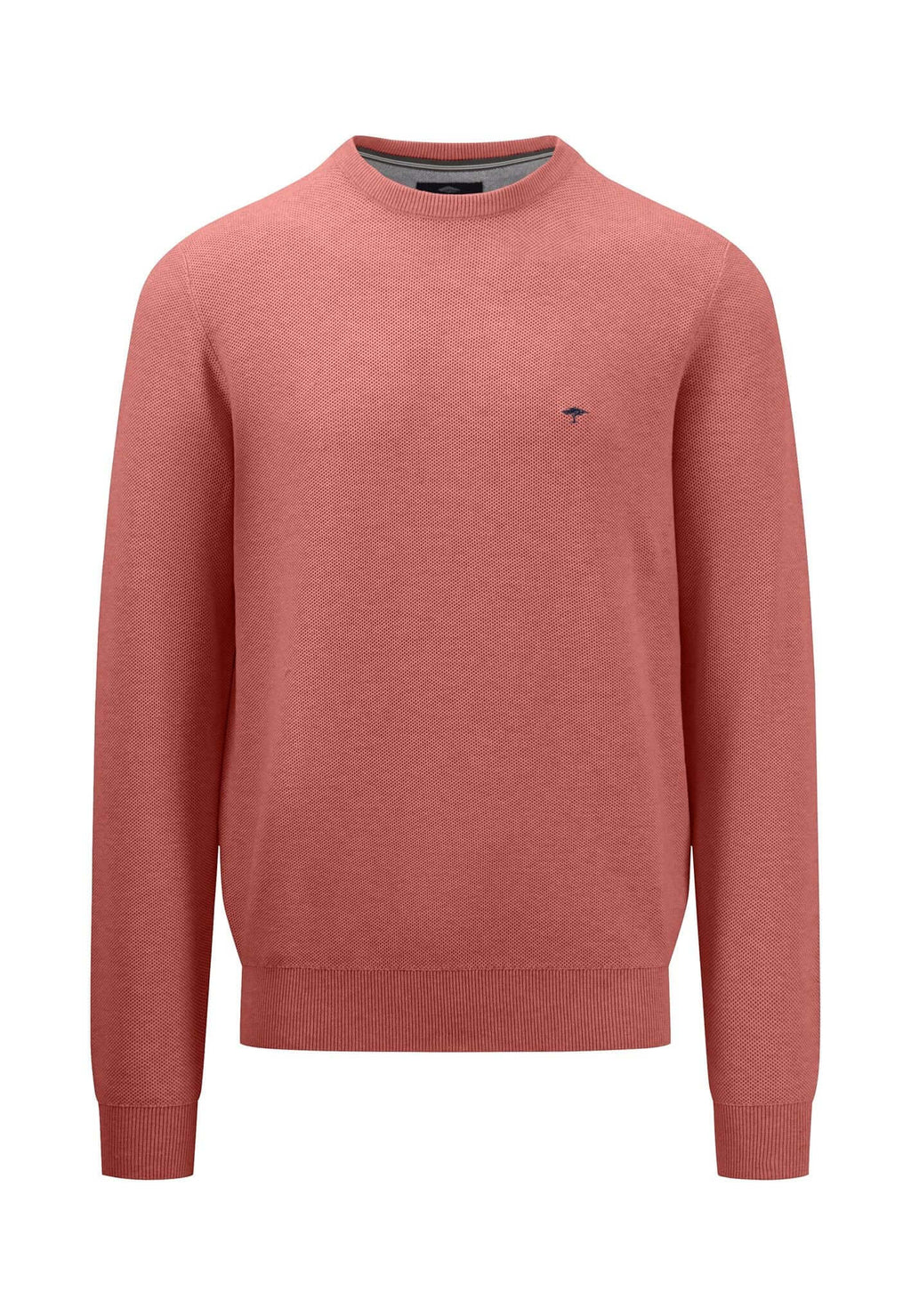 Fynch Hatton - Crew Neck Cotton Texture Pullover - Colour: Orient Red