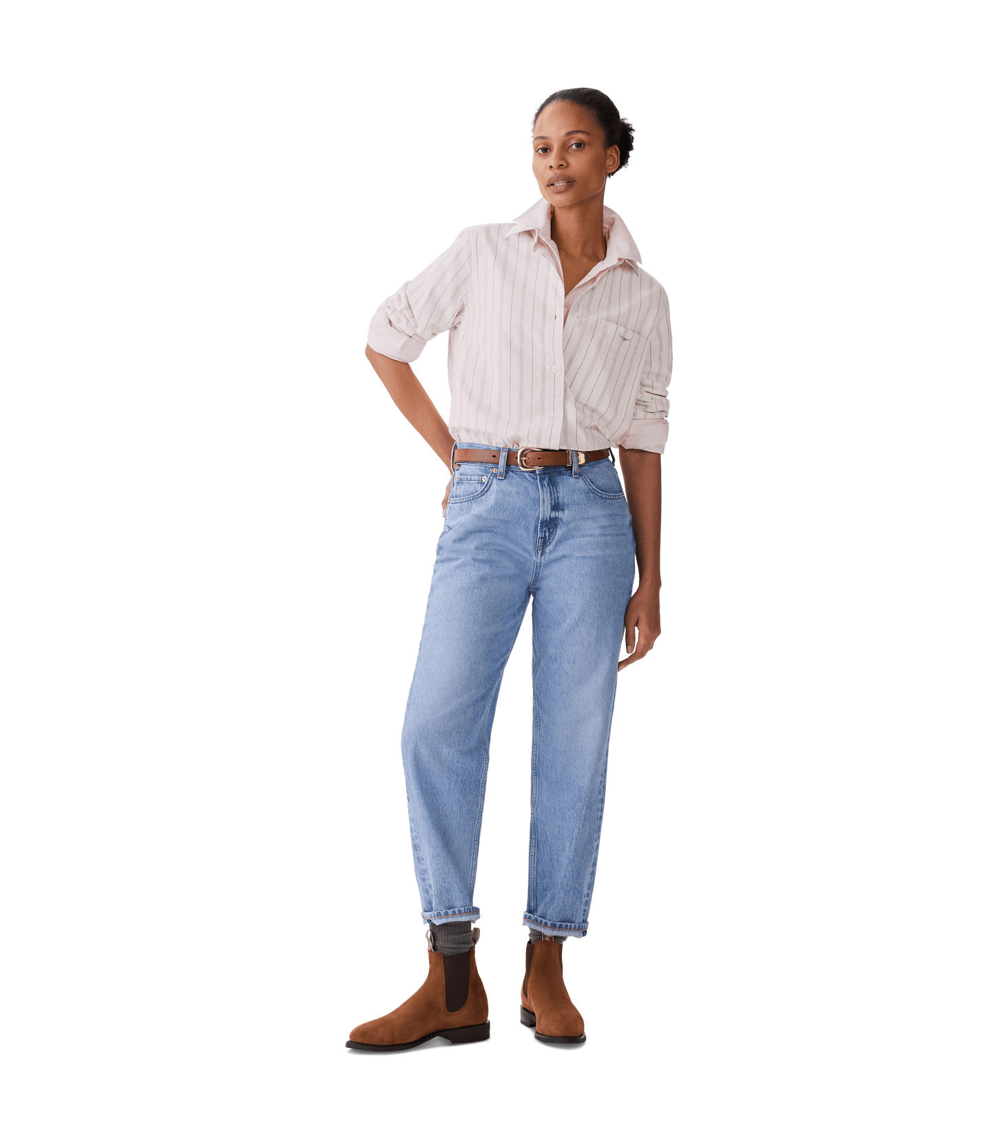 The Crispin Shirt from R.M. Williams features a straight fit and classic check, made from breathable cotton for daily wear. It includes a spread collar, long sleeves, and pointed yoke details at the back – a nod to R.M. Williams’ heritage. Versatile enough to dress up or down with denim or tailored trousers.