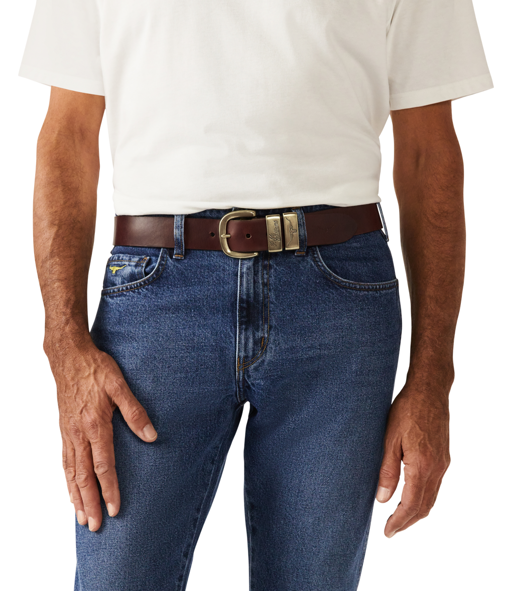 The iconic R M Williams Drover Belt combines Australian heritage craftsmanship with timeless style. Hand-finished in premium mid brown leather, this belt is built to last a lifetime.