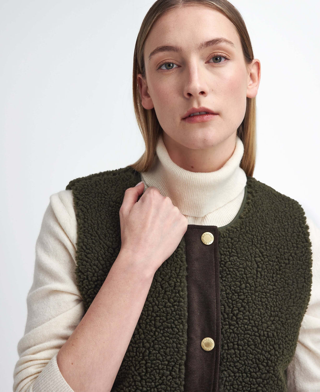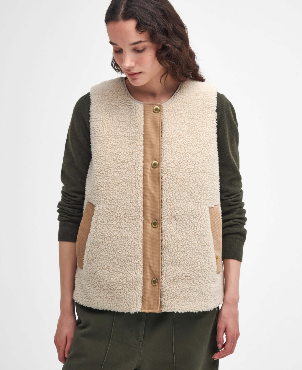 Add a touch of luxurious warmth to your winter wardrobe with the Barbour Dulsie Liner. Crafted from plush teddy fur fabric, this women’s gilet offers unmatched softness and comfort, perfect for layering through the colder months. Featuring a cord-studded placket and cord welt pockets, the Dulsie Liner exudes rustic charm and refined style. The cord accents provide subtle yet stylish detail, making this piece ideal for layering under a jacket or wearing over a cozy knit for extra warmth.