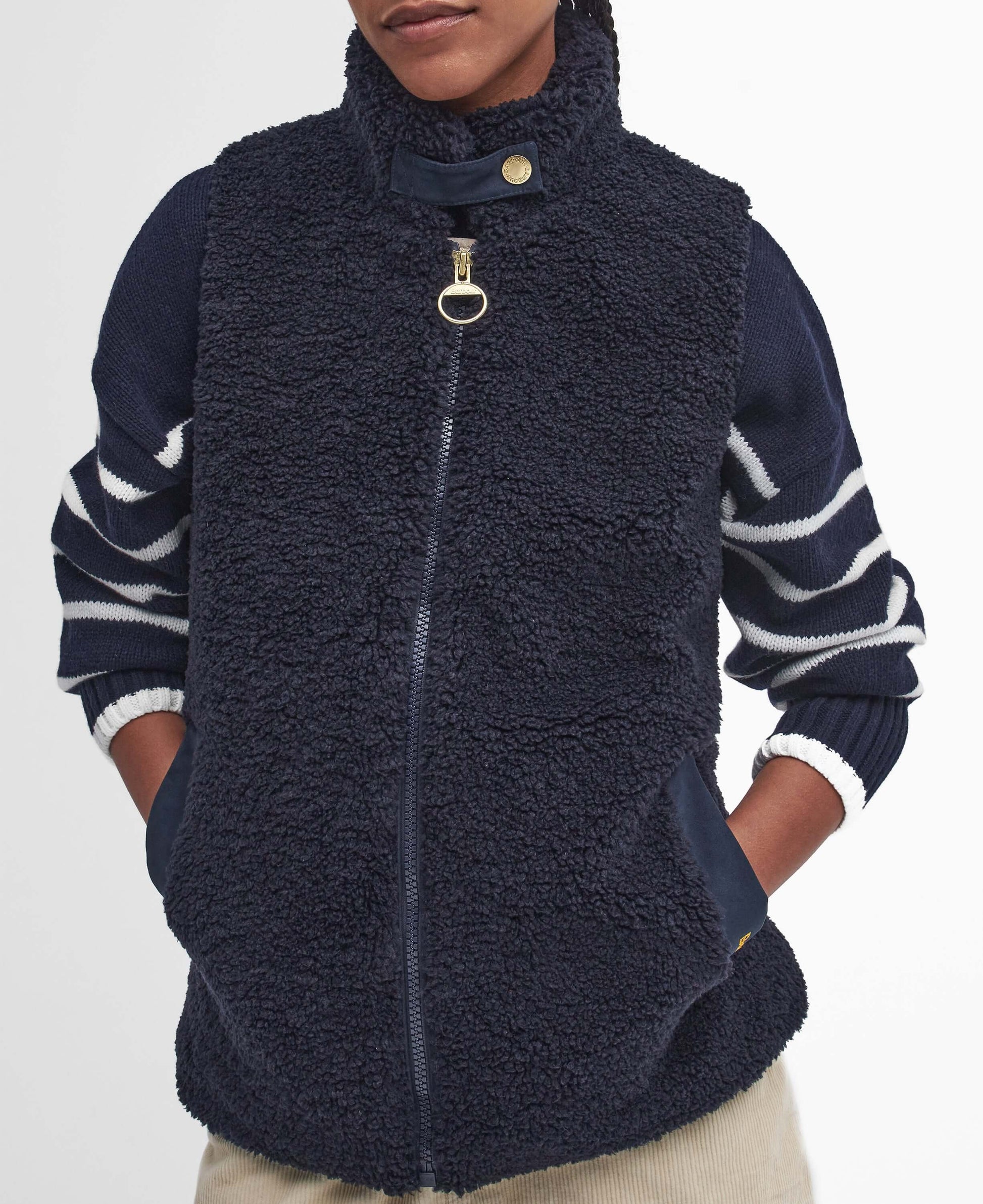 Barbour Elisha Gilet – Cozy Teddy Fleece with Quilted Trim