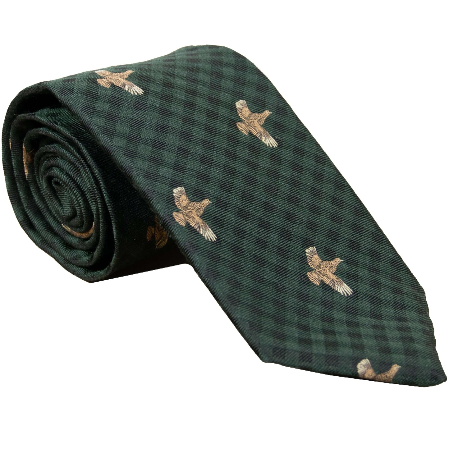 Livingston Flying Pheasant Checked Wool & Silk Sporting Tie – Classic Country Style with a Refined Finish