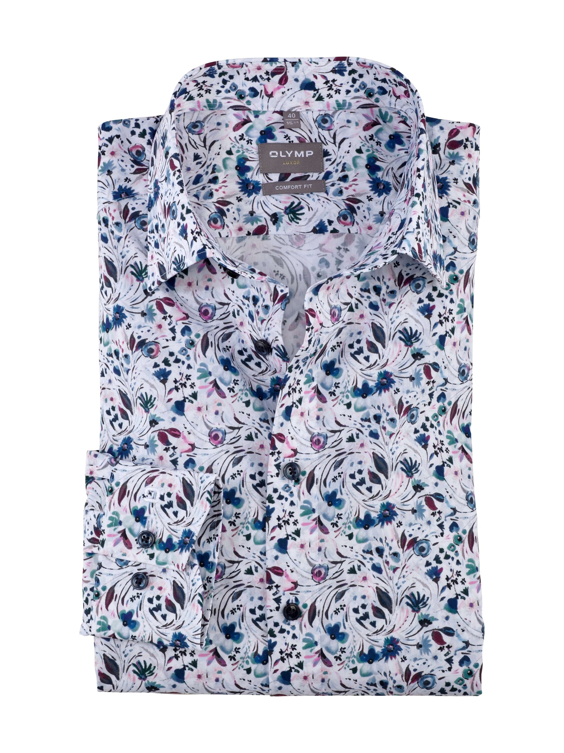 Olymp Luxor Shirt – Multicolour Floral Print with Smooth Cotton Finish
