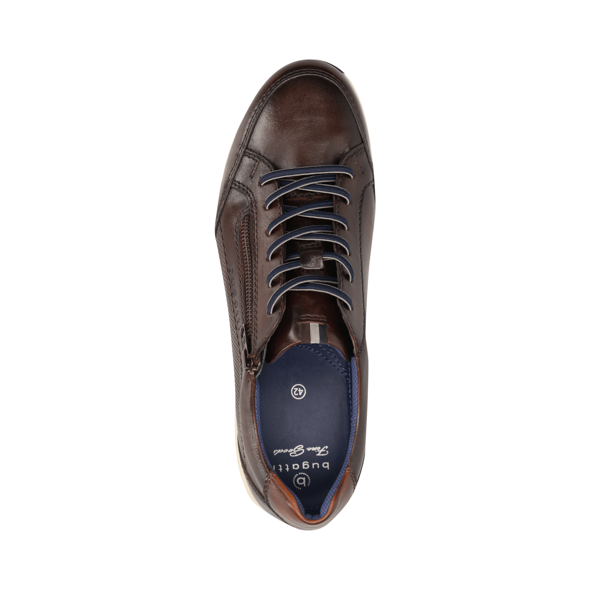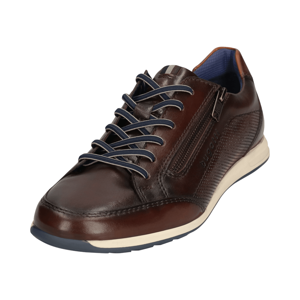 The Bugatti Riptide Runner blends sporty design with premium craftsmanship, making it the perfect choice for both casual and active lifestyles. Featuring a sleek leather upper, this low-top sneaker is designed for comfort, functionality, and modern flair. A lace-up closure combined with a bold zip detail ensures both style and convenience, while the iconic Bugatti logo on the side adds a signature finish.