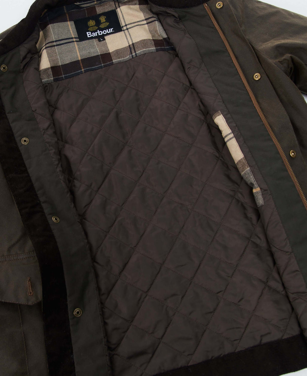 The Sheldon Wax from Barbour is a men’s regular fit waxed cotton jacket with stand collar, zip, and stud front fastening. This style features lower patch pockets with button fastening, box quilted lining, tartan inner yoke detail, and a tartan lined inner pocket. The jacket is finished with a leather Barbour badge on the left pocket. The style is perfect for autumn country walks. Wax jackets are not suitable for washing, sponge clean only.