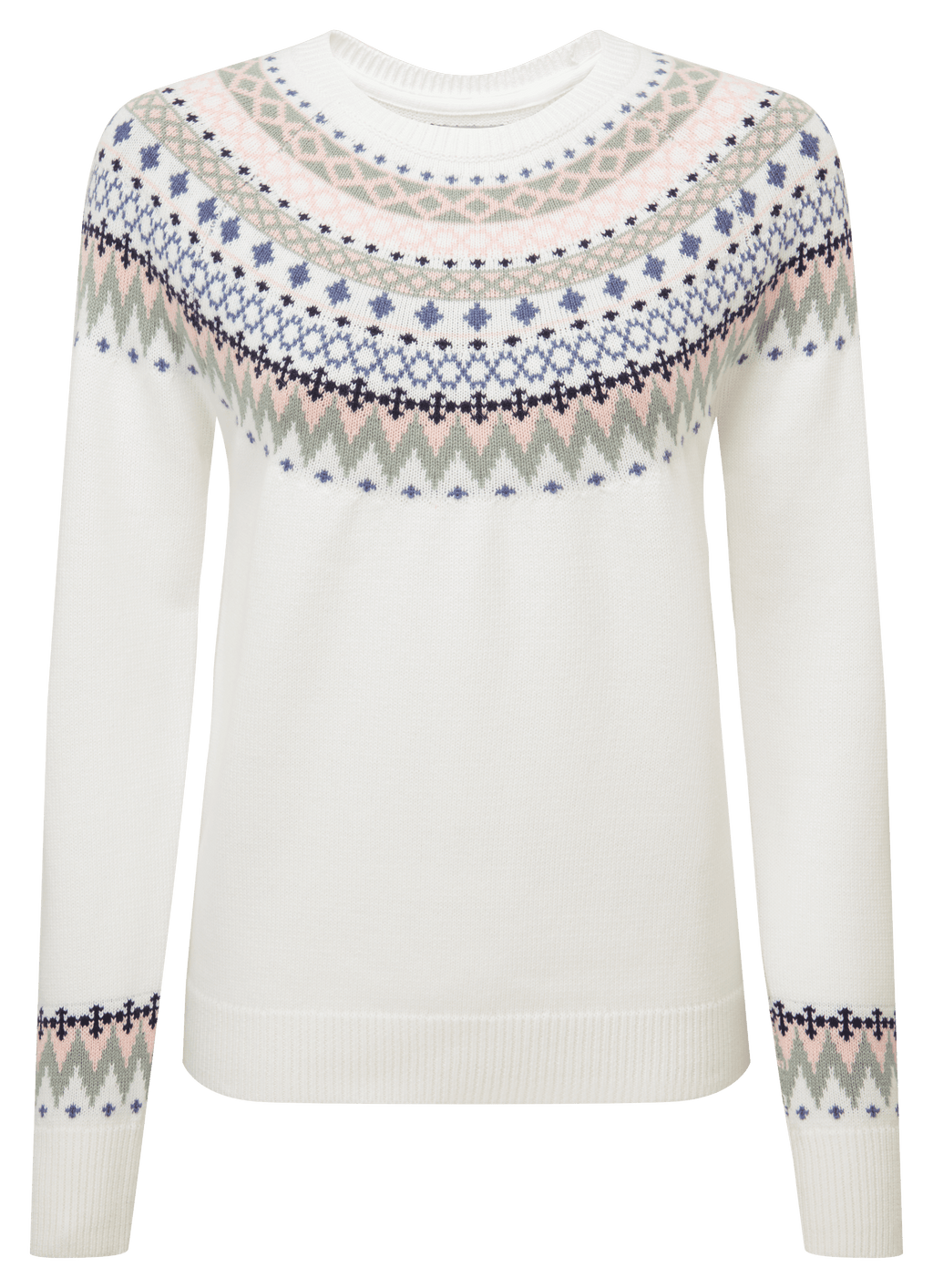 - Traditional fairisle knit pattern front, back, shoulders and cuffs