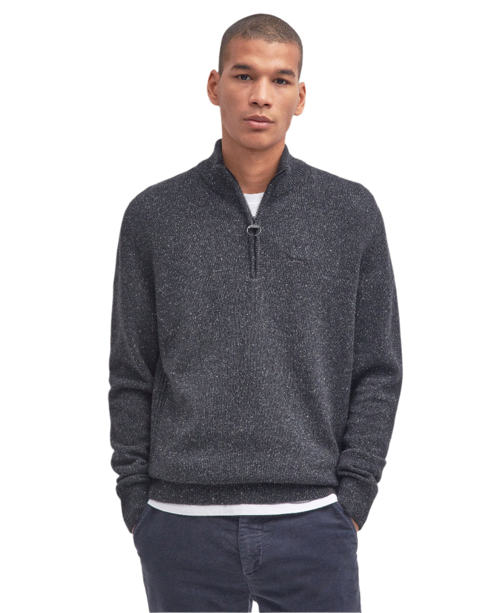 Stay warm and stylish with the Barbour Tisbury 1/4 Zip Pullover, a perfect layering piece for the colder months. Crafted from a luxurious blend of 60% wool, 24% polyamide, 8% viscose, and 8% silk, this half-zip sweater features a trendy tweed-fleck yarn that adds character to any outfit. The high wool content ensures exceptional warmth, while the touch of silk offers a soft, luxurious feel that you’ll love. With a signature Barbour zip and ribbing at the hem and cuffs, this versatile pullover is designed for both comfort and style, finished with tonal Barbour shield embroidery on the chest.